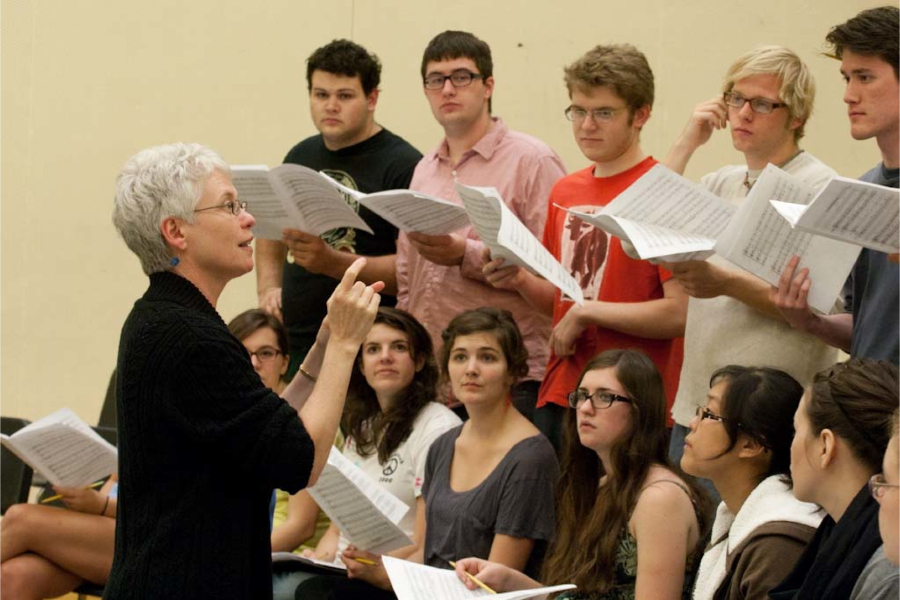 The Knox College Choir has changed dramatically since Professor of Music and Director of Choral Activities Laura Lane took the conductor’s baton in 1983. At its core, however, it has remained much the same 40 years later: a group of music lovers that gather and embrace the art of vocal performance.