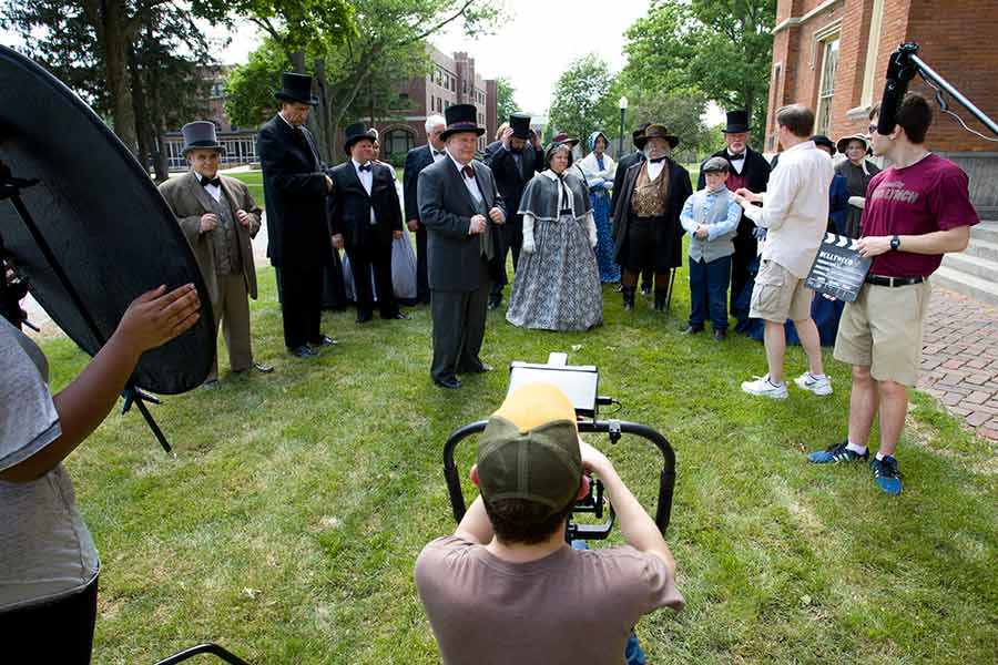 College students and the community played a major role in the original Lincoln-Douglas Debate at Knox College in 1858, cheering the politicians in the historic national argument over slavery. And students and the community were engaged again this year, in the creation of a film that condenses the years-long struggle and a months-long campaign into the words and actions that occurred in the crucial moments just before Abraham Lincoln and Stephen Douglas stepped onto the platform outside Knox's Old Main, the only original site that remains from the series of seven debates throughout Illinois.