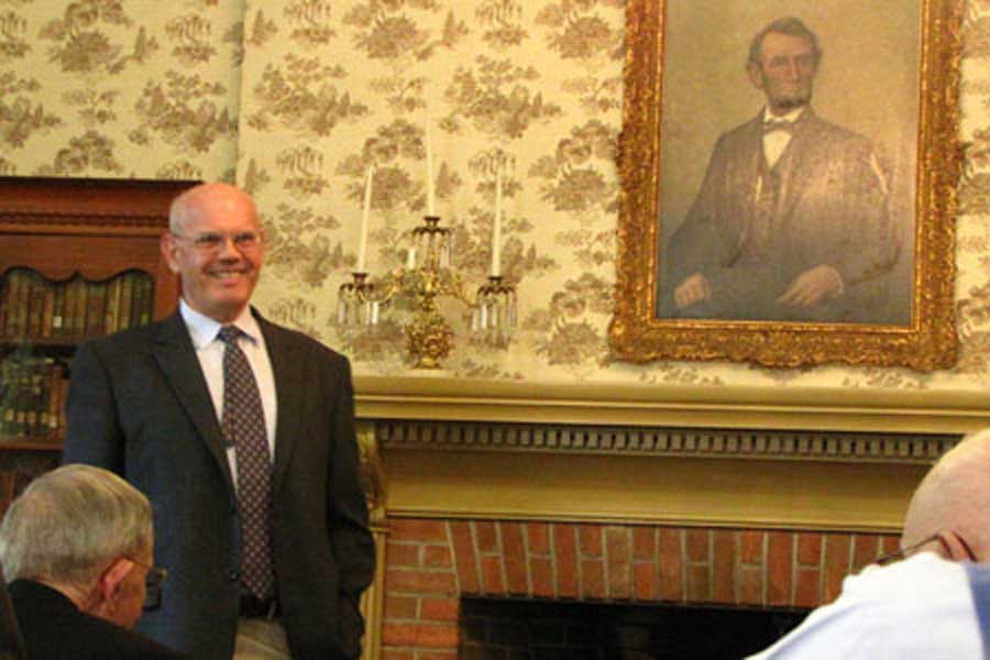 He discussed the two major beliefs the public holds about the Emancipation Proclamation, one being that Lincoln freed all slaves with the stroke of his pen on the Proclamation, and another view of Lincoln as a reluctant emancipator.