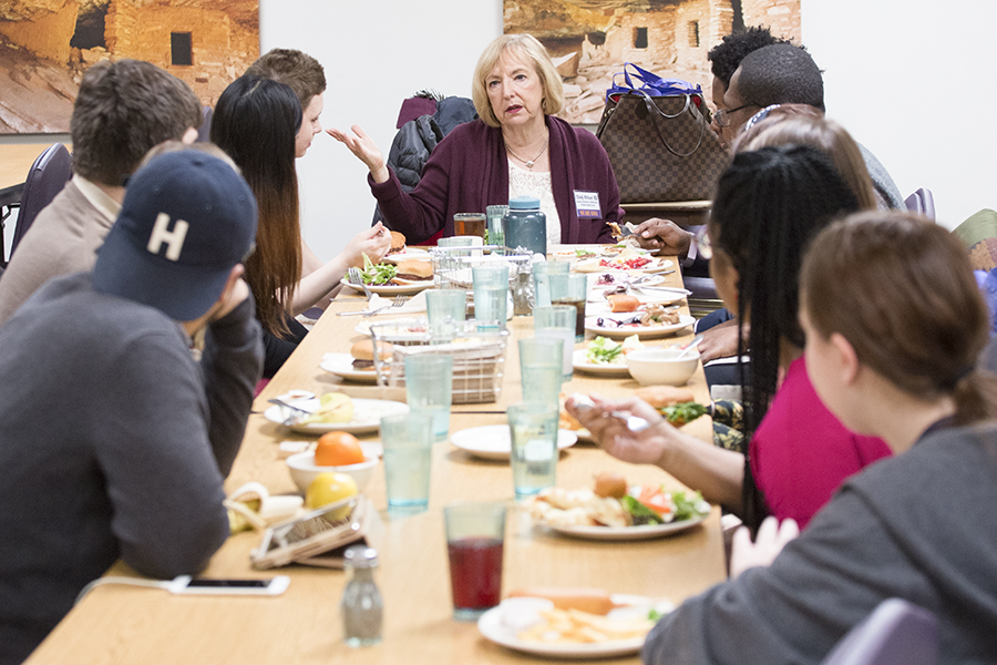 Law Professor Cindy Wilson '82 came to the Knox College campus to answer questions and offer advice to students interested in the law profession. While on campus, she met with students individually, talked with the Pre-Law Club, and answered student questions during a "Lunch with a Lawyer" event.