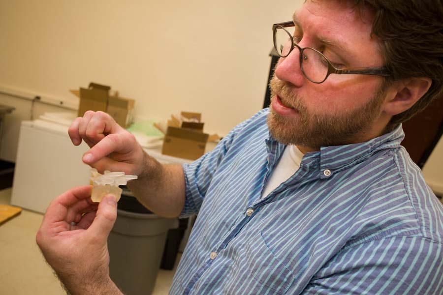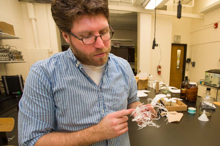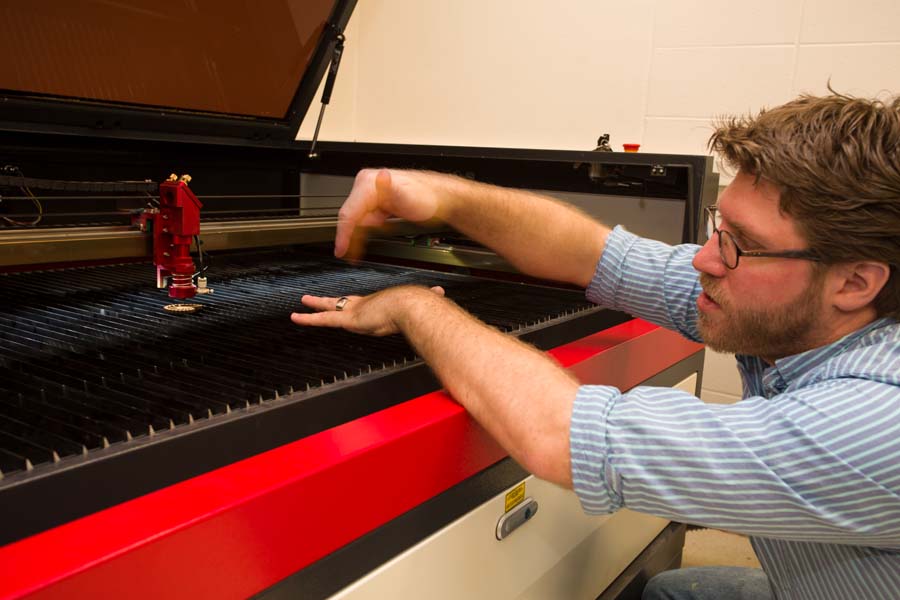 Nicholas Gidmark, assistant professor of biology, installed a 3D printer, laser cutter, and computer-controlled milling machine—supported in part by a grant from the Scripps Foundation—to create a "science makerspace."