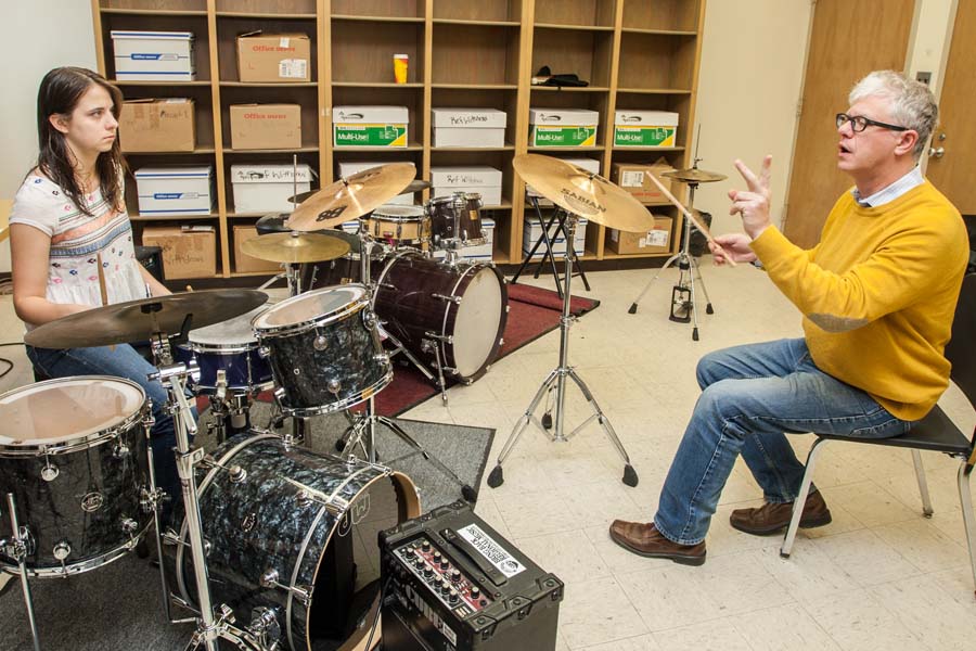 While the drum is found in cultures worldwide, the drum set is uniquely American, Wilson told a group of students from music and dance classes. The drum set is a "melting pot," Wilson said. "The tom-tom comes from the African tradition, the snare drum from the European tradition, and the cymbal from the Asian tradition."