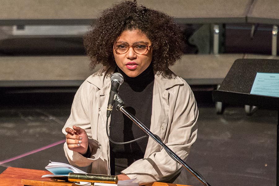 Fred Hord, professor of Africana Studies read his poem "Our Lives Mutter." Students Frencesca Downs '19, Catlin Watts '16, and Nicole Hunter '16 also read poetry selections.