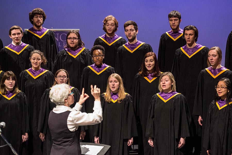 Convocation opened with two spirituals performed by the Knox College Choir and directed by Laura Lane, professor of music.