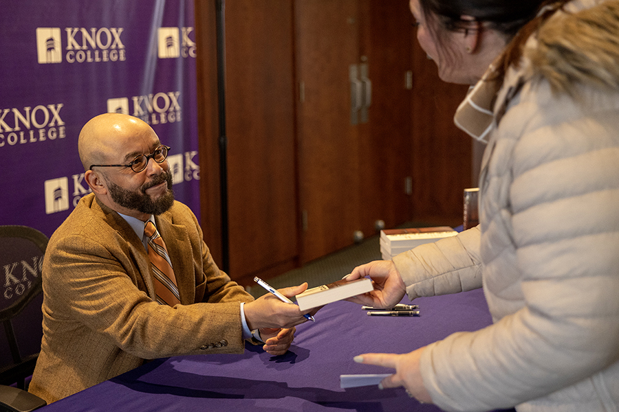 Knox College President C. Andrew McGadney opened the event, welcoming everyone in attendance, including a group of Gale Scholars, Galesburg-area high school and junior college students, as well as prospective students visiting for the Winter Open House.
