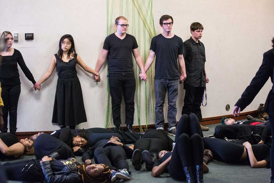They joined hands, chanted "Black Lives Matter," and observed 4 ½ minutes of silence during a "die-in" where some students lay motionless on the floor. The 4 ½ minutes represented the 4 ½ hours that Michael Brown's body lay in the street after he was fatally shot last summer by a police officer in Ferguson, Missouri.