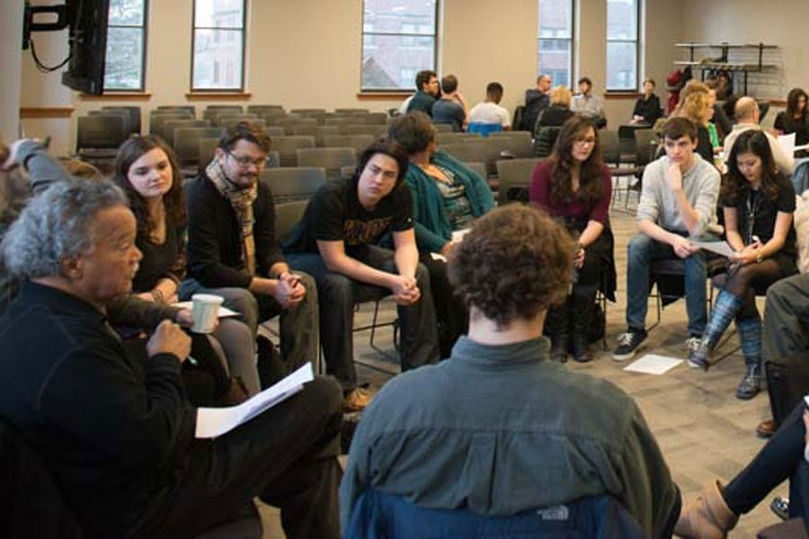 More than 150 Knox students, faculty members, and staff gathered in Alumni Hall late Monday afternoon for a "teach-in" designed to encourage open conversations about issues raised earlier at the King Day Convocation.
