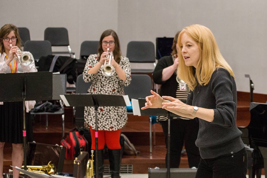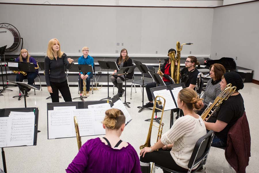 Photos at top of page and below: Maria Schneider rehearses with the Knox College Jazz Ensemble.