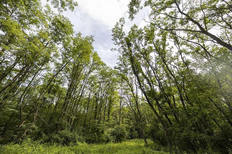 Many of the trees marked for removal in the construction area are black locusts, a species of tree not native to central Illinois. Decisions on which trees to remove and where to site the building were made thoughtfully and in consultation with members of our community who know the land best.