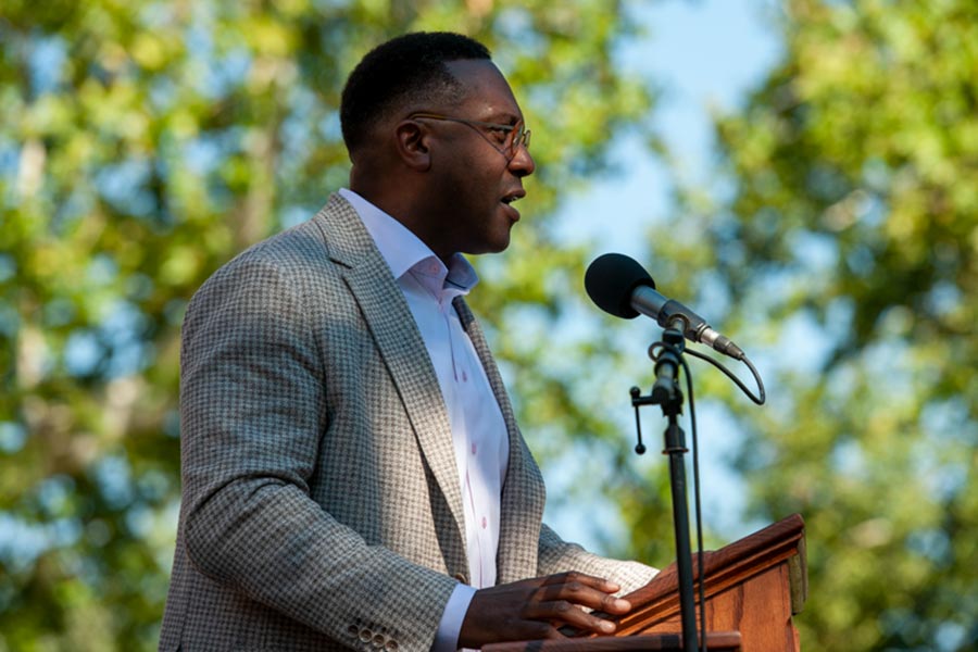 Later in the afternoon, students and parents gathered on the south lawn of Old Main to take part in a Welcome to Knox event. Knox College leaders, including President C. Andrew McGadney, shared messages of excitement for the new year, the many opportunities ahead, and much more.
