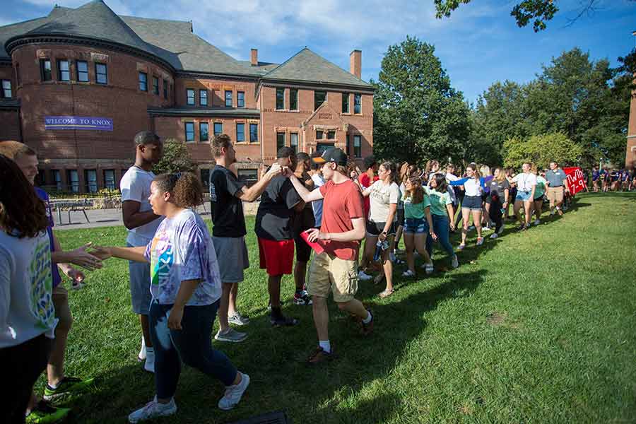 The new students spent four days learning more about one another and the overall Knox community through various orientation activities like individual advising appointments, consent workshops, and Library visits. On Monday, September 16, new student orientation ended with Pumphandle, the annual tradition when all Knox students, faculty, and staff come together to welcome each other back to campus.