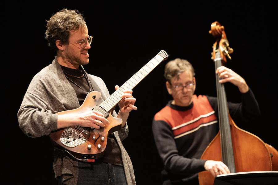 The Orpheum Theatre reverberated with the sounds of New York jazz on Friday, January 19 as the Mirza Jazz Residency closed the book on its 11th year with exciting performances by the Gilad Hekselman Trio, the Cherry St. Combo, and the Knox Jazz Ensemble. These performances served as the culmination of a week filled with workshops, rehearsals, and jam sessions for Knox students, led by the talented members of the trio: Gilad Hekselman (guitar), Joe Martin (bass), and Joe Dyson (drums).