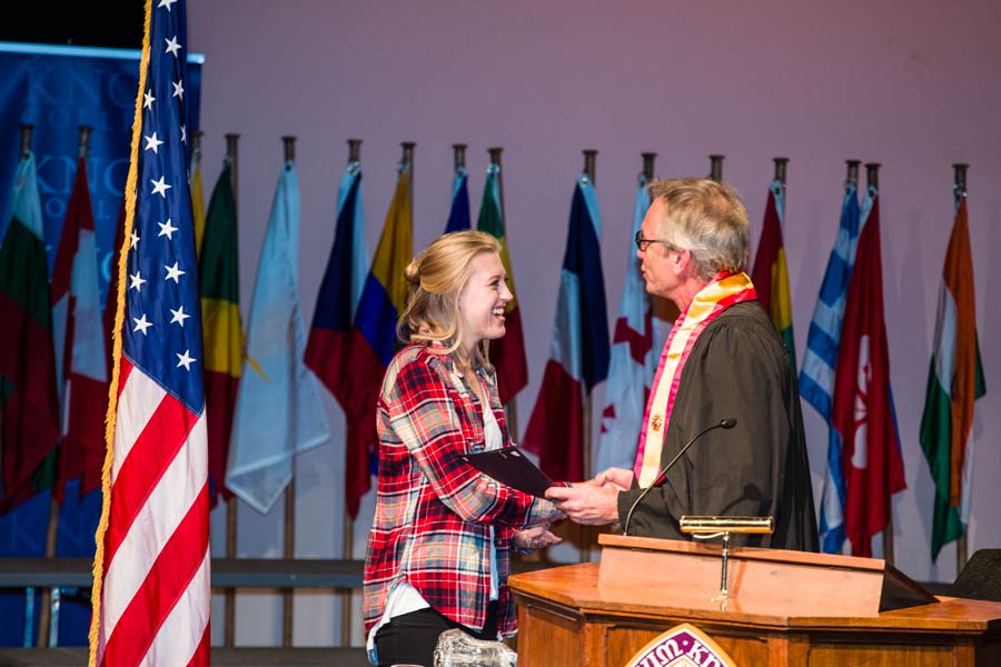 Kelsie Pos, a senior biology major, received the Elbridge Pierce Prize for scholastic improvement. It is awarded to the senior who has made the greatest scholastic improvement since the end of the first year at Knox.