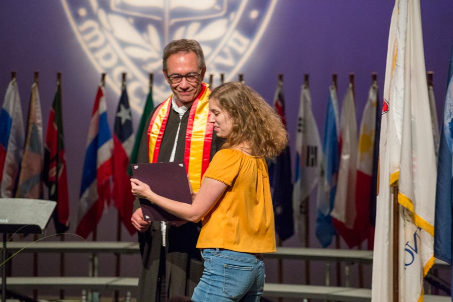“In the end, it’s not the words on the paper. It’s the global conversation about what values matter and what we will do to defend those values on a daily basis,” Schneider said. “Please see your Knox education as an opportunity to understand and participate in the global conversation—and I hope you will keep the conversation going.”