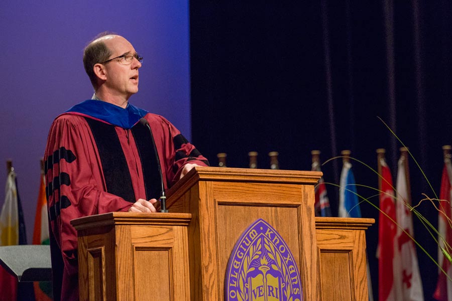 “The world is represented [in this room],” said Corsaro. “We all come from different places, holding different values, cherishing different beliefs and philosophies.” Even so, she added, everyone’s path has led to Knox College, “where we, together, become the Knox community.”