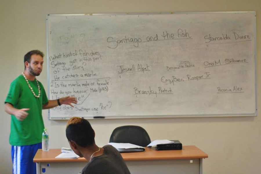 One of the Knox alumni to make a difference as a Peace Corps volunteer is Ben Taylor ‘07 of O'Fallon, Illinois, who served as an English education volunteer in Micronesia from 2012-14. He organized workshops and lesson-planning sessions and co-taught with fifth- through eighth-grade teachers to raise student test scores. (Photos above: Ben Taylor serves in Peace Corps.)