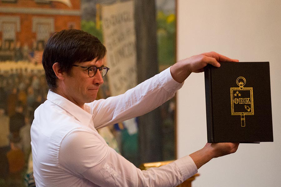 To mark its 100-year anniversary at the 2017 induction ceremony on June 3, incoming members added their signatures to a new black leather-bound book with the Phi Beta Kappa key embossed on the cover.