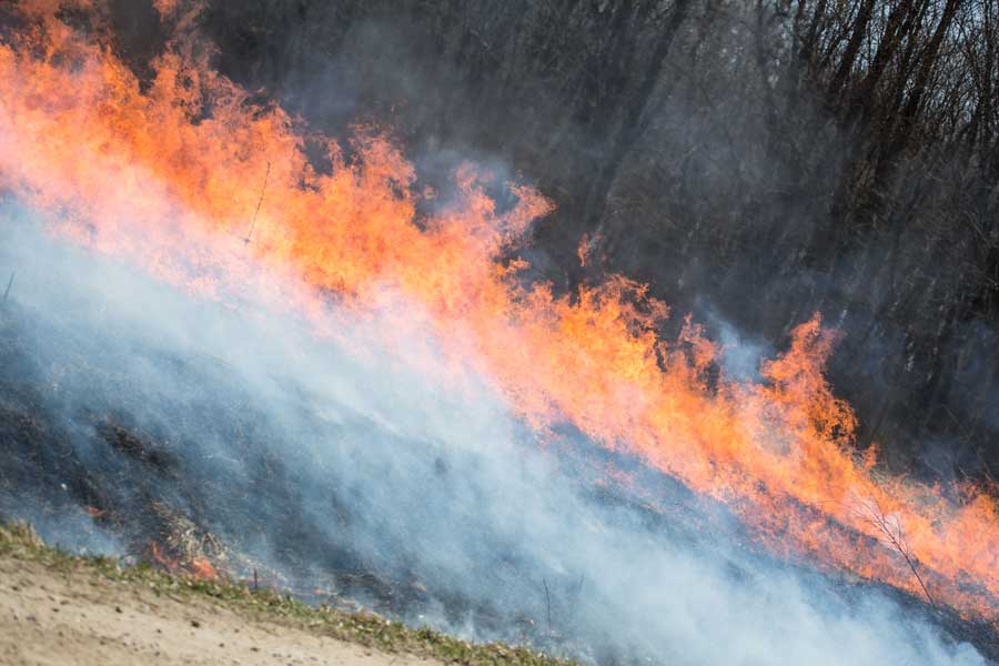 Controlled burns at the Green Oaks property are a Knox College tradition, and one section of prairie typically gets burned each spring. According to Allison, a three-year rotation for each prairie area works best to encourage diverse plant and animal life.