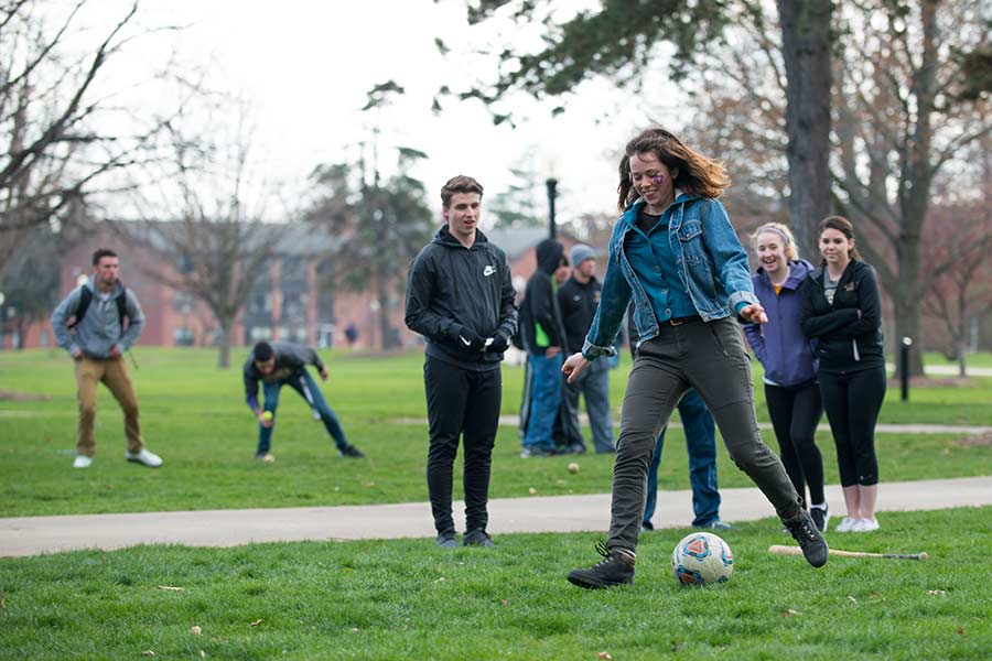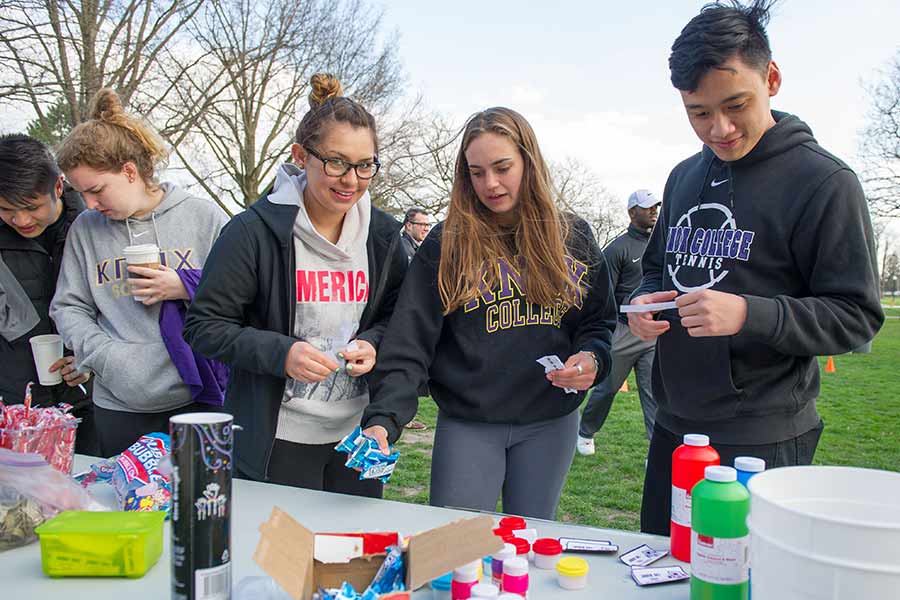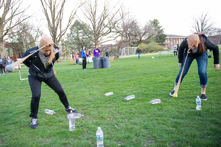 Knox College student-athletes, with the help of the Student Athlete Advisory Committee, hosted the event, where students, faculty, and staff gathered for a cookout. After conversing over great food, the student-athletes invited everyone to play a variety of games, including throwing footballs at tackling dummies, wheelbarrow races, and knocking down bottles with baseballs.