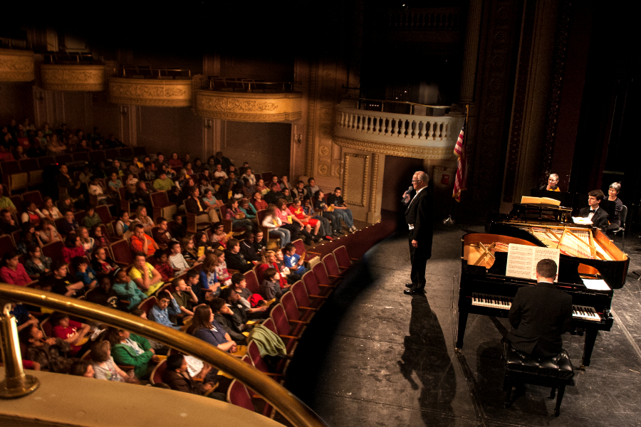 "Carnival of the Animals has a nice spread of instruments," Polay says. "It features a number of musicians on the stage, and it presents two pianos playing together, which students may have never seen before. It also gives them a sense of how a composer might use instruments to create world of animals."
