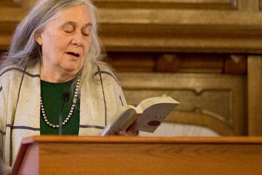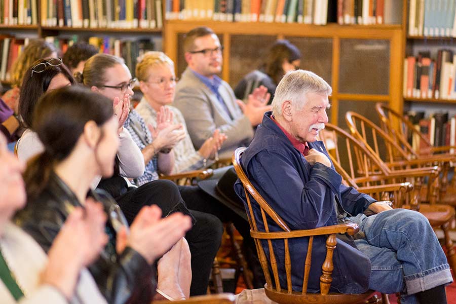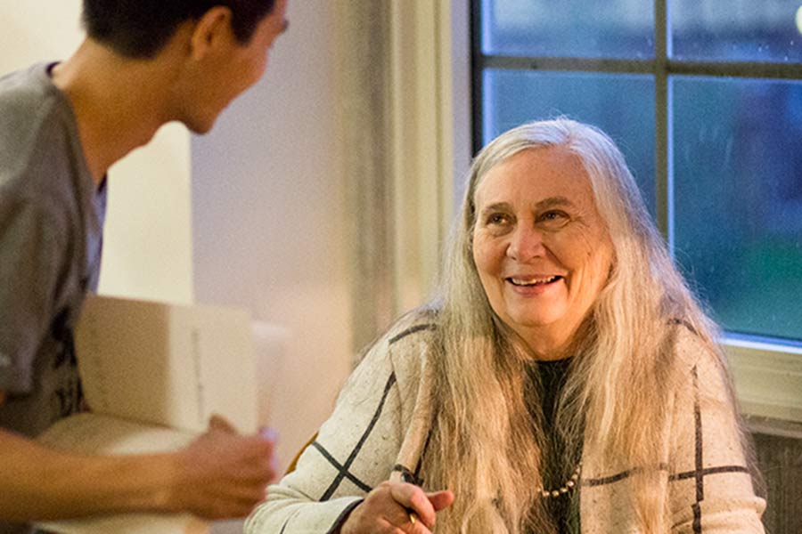 In opening remarks, Professor Nicholas Regiacorte underscored the universal power so aptly described by Robinson and her work. "Doesn't great art feel like an appearance after death? To be shaken by something, someone, out of nothing. To feel aflame with love," he said. "The prose of her novels trains me to see radiance in human beings, through all calamity and frailty."