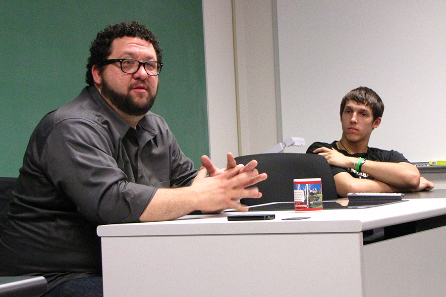 In discussing the writing process, Konkol advised students to make an outline of stories "when they're big and they're important to you."