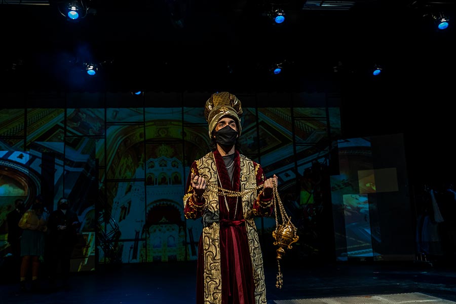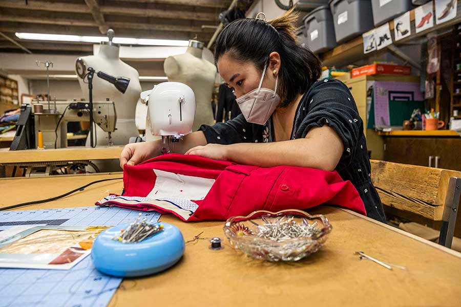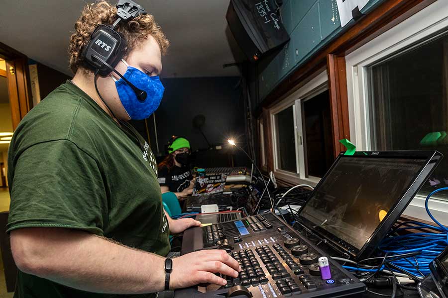 “Pretty well, all things considered, with COVID and general scheduling wackiness. It’s been a challenge, a fun and not impossible one, which is what keeps us going.” —Nicodemus Meade-Greeman ’23, who is majoring in theatre