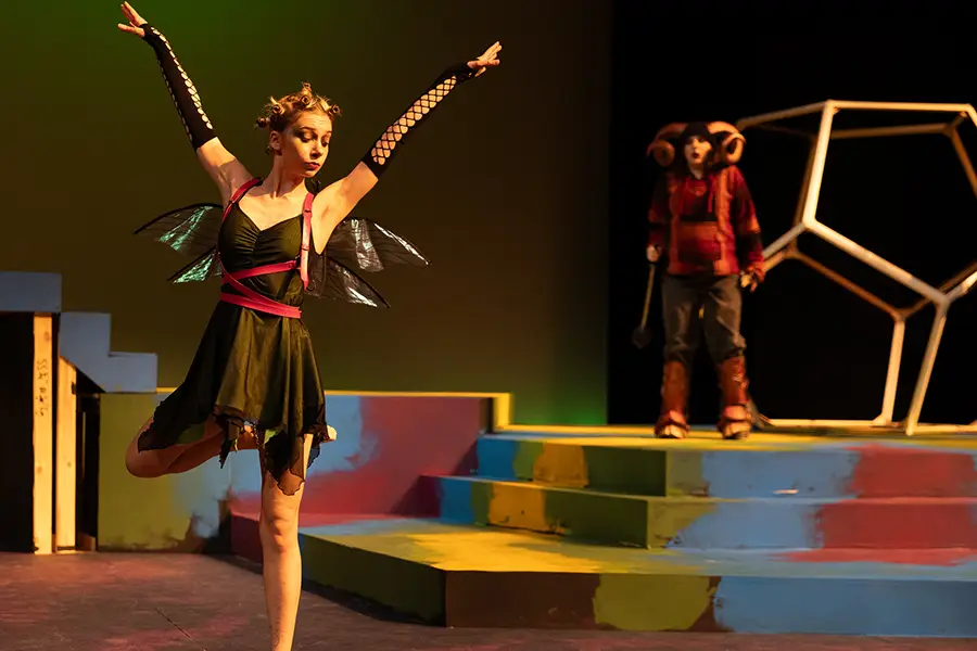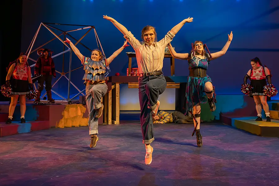 Carlin Metz directed She Kills Monsters in her 10th season of Rep Term. “The play celebrates nerdiness and geeks. It’s a play about self-discovery and about overcoming your barriers,” she said. She is not the only faculty member to celebrate multiple Rep Terms. The 2025 Rep Term marks 11 immersive terms for Professor of Theatre Craig Choma ’93—10 as a faculty member, one as a Knox student. Associate Professor of English and Theatre and Writer-in-Residence Sherwood Kiraly ’07 participated in the very first Rep Term in 1970 as a student, officially receiving his degree in 2007. To thank Kiraly for his long Rep Term history, the company dedicated their 20th season to him.