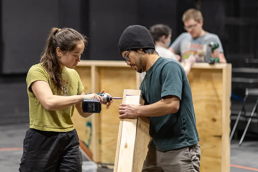 Every Rep Term’s success is based on intensive collaboration between faculty and students. Students spend an entire academic term planning, preparing, and performing two shows. They take on all responsibilities related to producing the shows, including acting, constructing sets, designing costumes, and managing publicity. Not surprisingly, Rep Term students follow a schedule that's challenging but not unexpected in the field of professional theatre. At crunch time, it's seven days a week of rehearsal and preparing the set. They'll give 10 performances, five of each show, over the course of two weeks.