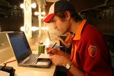Eric Feltes '08 studies backstage. Each student is assigned to a crew that they feel comfortable and that best utilizes their talents. Students also select one other duty, an area of interest that is outside their comfort zone.