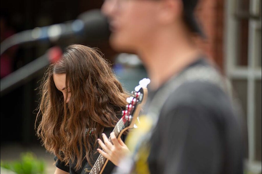 Local band Company Dimes performed during a lunch break on the Gizmo Patio, bringing high-octane tunes to recharge those in attendance. Students enjoyed free meals throughout the day, with local offerings from Cornucopia and Orange Cup. Water and snacks provided by the College were available all day to keep students fueled.