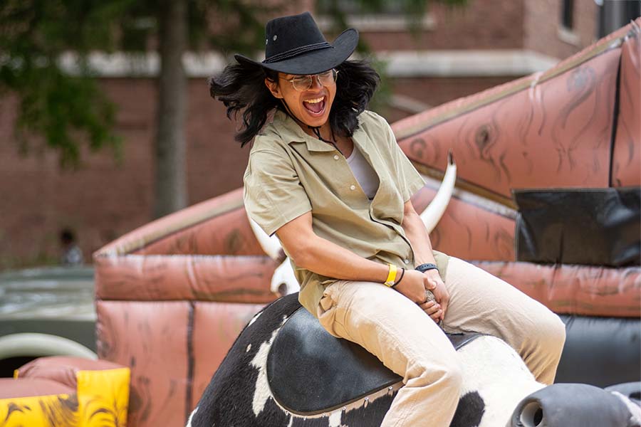 Across campus, rides and booths were set up, sticking tight to the Rodeo theme. Students panned for gold, bounced on inflatable horses in a race to the finish line, and even tried their hand at lassoing a mechanical sheep. A miniature train on wheels whistled across campus, taking students on a delightful trip. For those seeking relaxation, a zen room in Ferris Lounge offered a make-your-own-lip-balm station and an oxygen bar.
