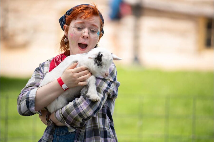 A highlight of the day for many was the petting zoo set up outside of Old Jail, with dozens of goats, chickens, and even a donkey available for students to cuddle and bond with.