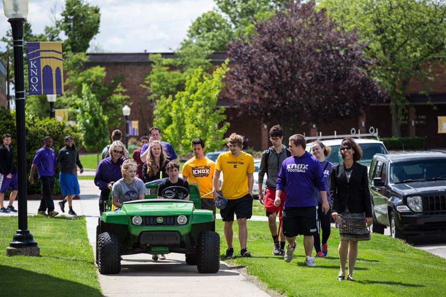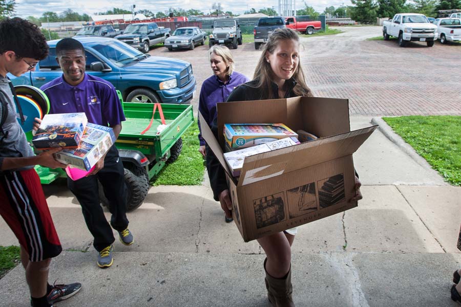 It was more than a "bookmobile," when Knox College students and President Teresa Amott wheeled up to the local Boys and Girls Club of Knox County with a trailer-full of close to $770 in donated books, bats, balls and other recreational items.