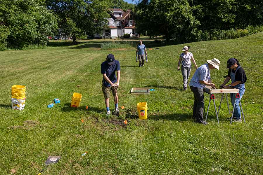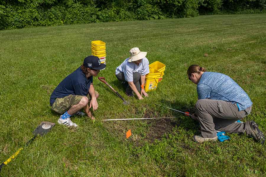 Other participants in the dig included Morghan Bacon '22, Phoenix Haessler '22, Bea Hartman '22, James Stratton '21, Abbi Harb '22, and Karly LaTurner '24, students in Douglas and Maria Bayer Endowed Chair in Earth Science and Associate Professor and Chair of Environmental Studies Katie Adelsberger’s Soil Science course. Adelsberger and Jason Connell '08 (who works in Seymour Library) also volunteered at the site.