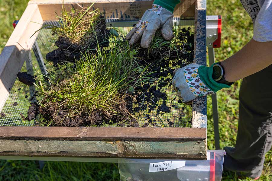 “The digger would have to carefully shave off layer by layer of soil and dump that dirt in buckets,” said Dixon. Those buckets were handed off to other volunteers, who used “a sieve to separate the soil from any large material within it. The diggers would switch out after each square,” allowing each of the volunteers to get experience.