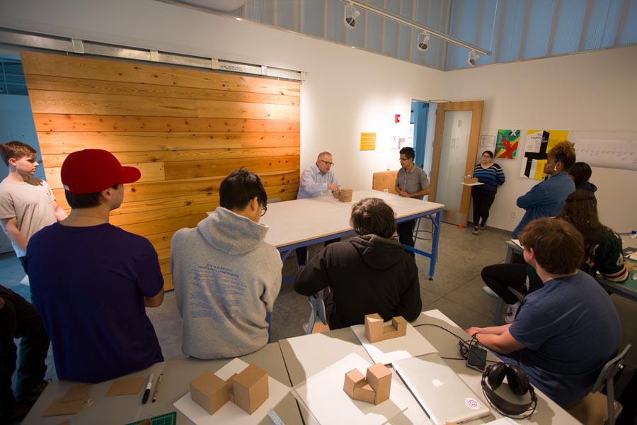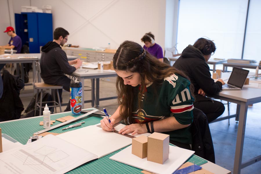 The learning curve for the architecture course was steep, and students moved quickly from one topic to the next. For many, it was their first time working with exacto blades to make cardboard models, or using CAD (Computer Aided Design) software to virtually create a structure.