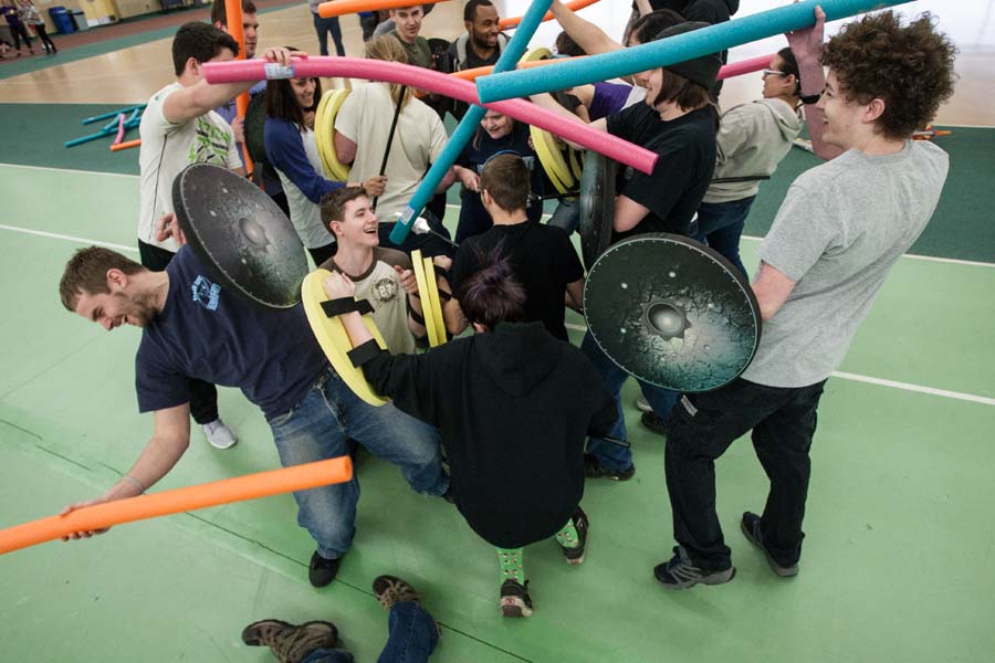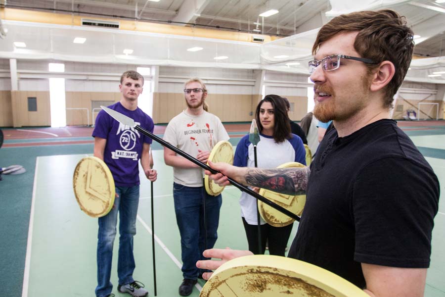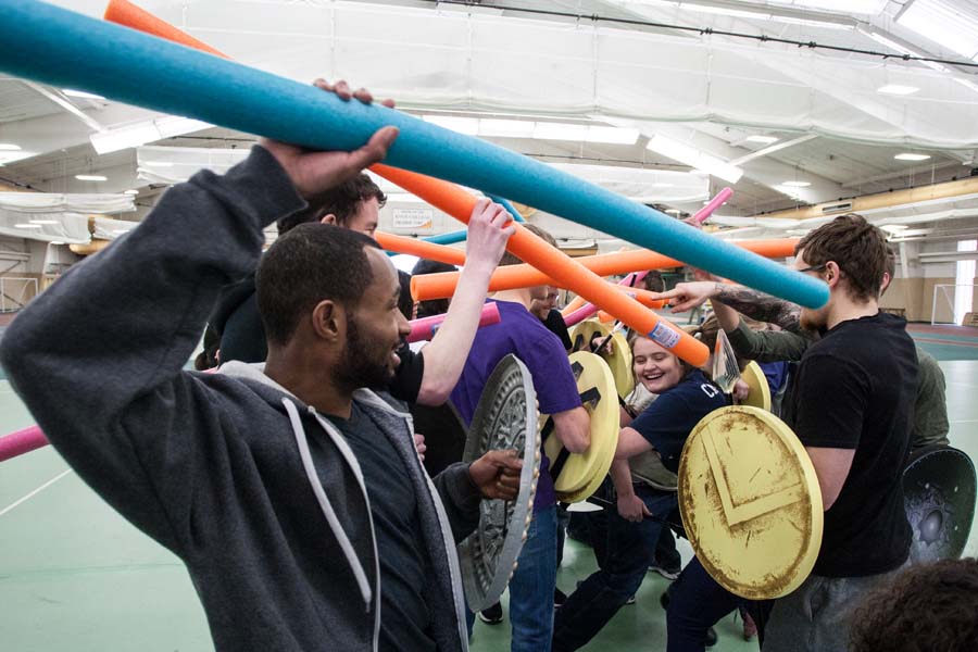 A few dozen Knox College students recently got a foam-padded lesson in what it was like to fight as foot soldiers in Greek, Roman, and Celtic armies of the ancient world.