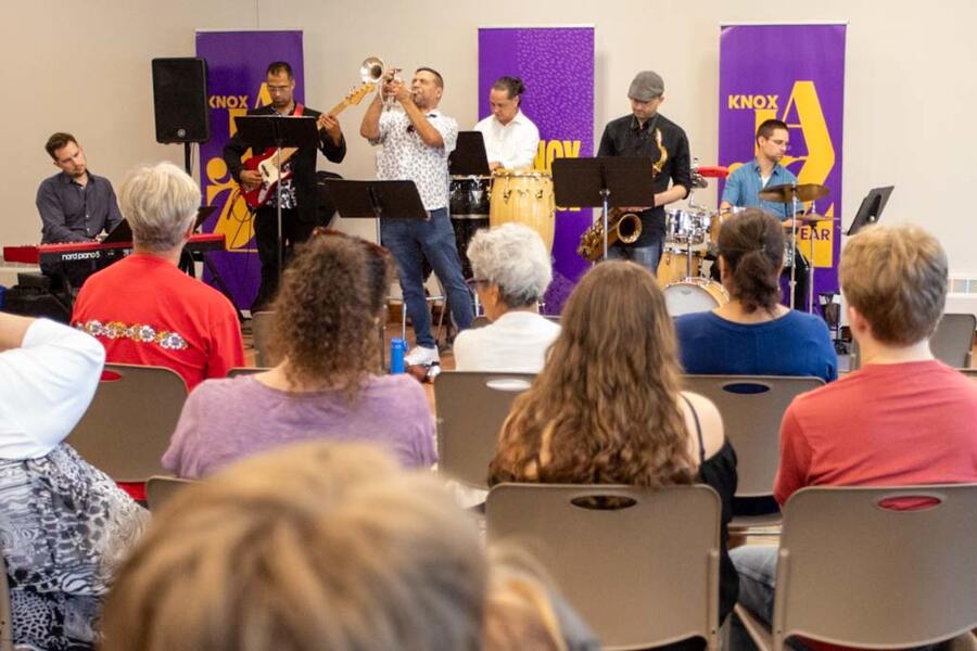Throughout the week, Garcia played with three separate bands around the area. He began by visiting schools in Galesburg, Monmouth, and Knoxville, performing for students with the Victor Garcia Quartet. The group taught students about how African music traveled throughout the Americas and evolved differently in each country, as well as the origins of Latin Jazz. Selected students were also given a chance to play along with the band.