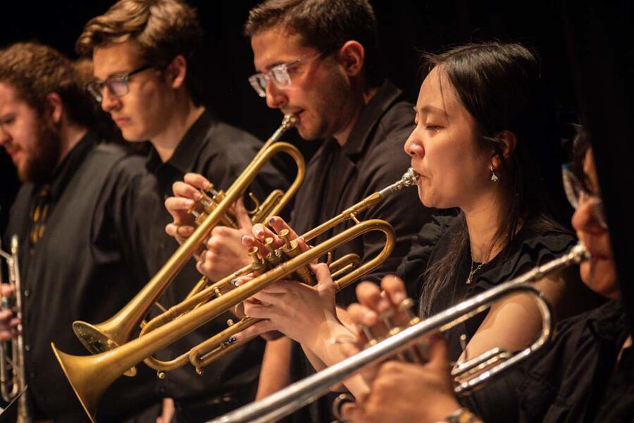 The Knox Faculty and Friends Combo and Alumni Big Band also made appearances, with alumni coming from all over the world to play. Yumi Kusunoki '10 flew into Galesburg from her home in Japan to play trombone. She hadn’t returned to the area in six years and felt excited to get back on the stage, performing a few solos throughout the night.