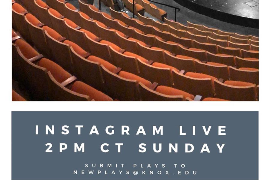 Here’s how it works now: Every Monday, Knox Theatre posts a one-word prompt to its Facebook, to its Instagram, and by email. “The prompt is for inspiration; the plays do not need to include the word,” Willison said. By Friday, student playwrights submit their drafts—plays that are no longer than 15 pages—for review. On Saturday, selected playwrights are notified that their scripts will be read the following day when the plays are presented Sundays at 2 p.m. Central Time on Instagram Live by Knox actors.
