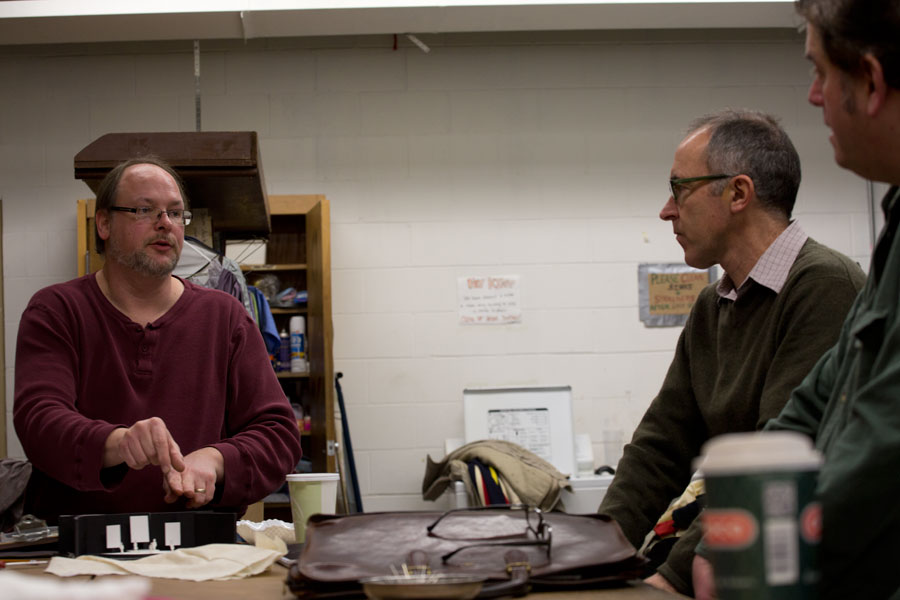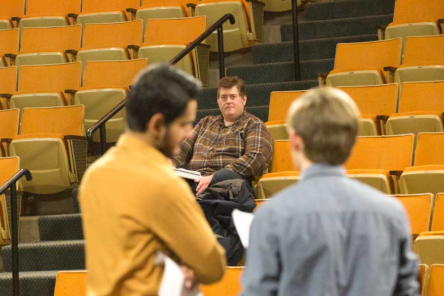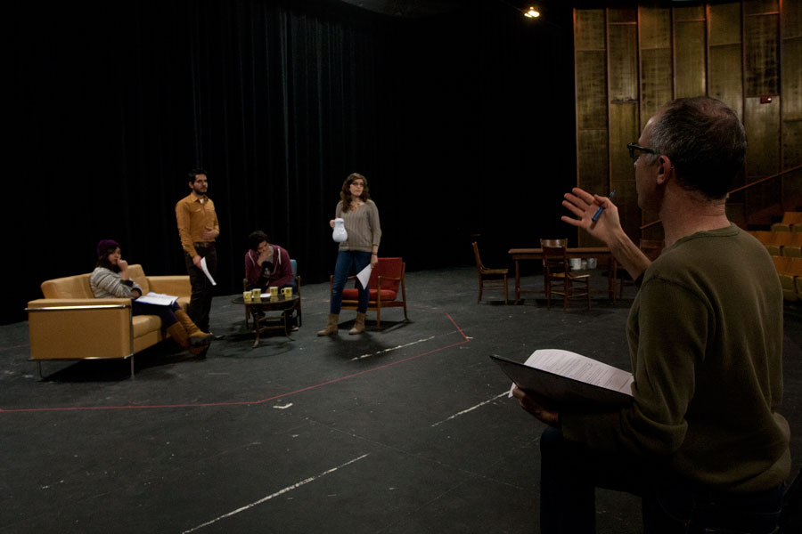 Above, photos from rehearsal and production meetings; more photos in an album at the Knox College Flickr channel.