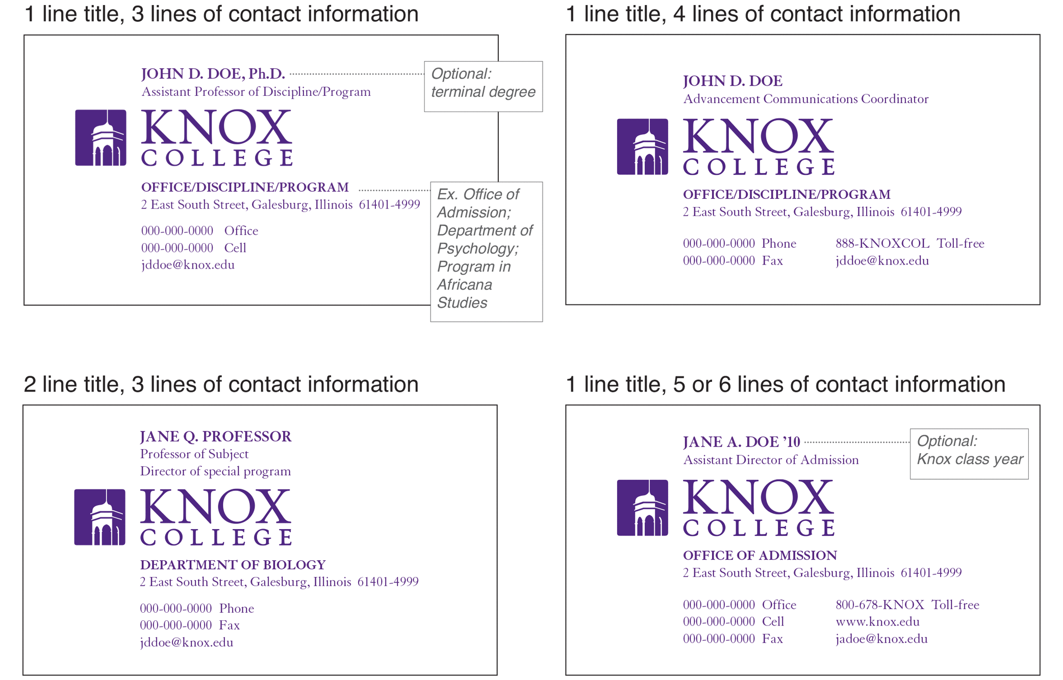 Below are guidelines and samples for all elements of Knox's stationery system. Including: